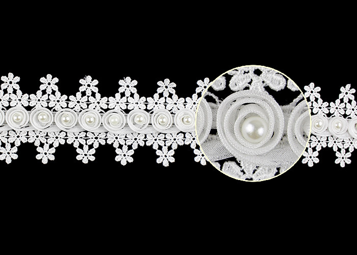 Hassas, iyi hassasiyetli ve net 3D çiçek boncuklu guipure dantel trim, %100 denetim ambalajlamadan önce.