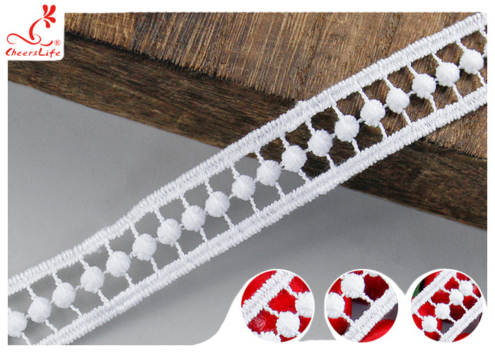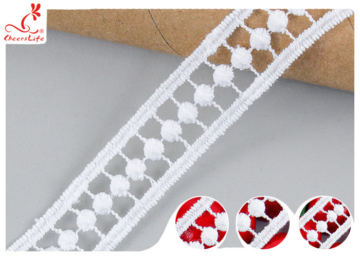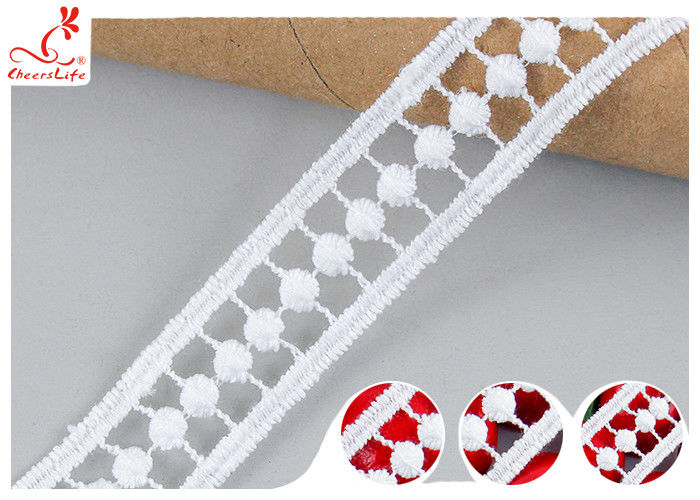2cm Beyaz Guipure Poli Süt İpek Geçidi ile bordürlü dantel trim OEKO TEX 100 kalıcı renk gösterir, giyim için uygundurFabrika seri üretimi.